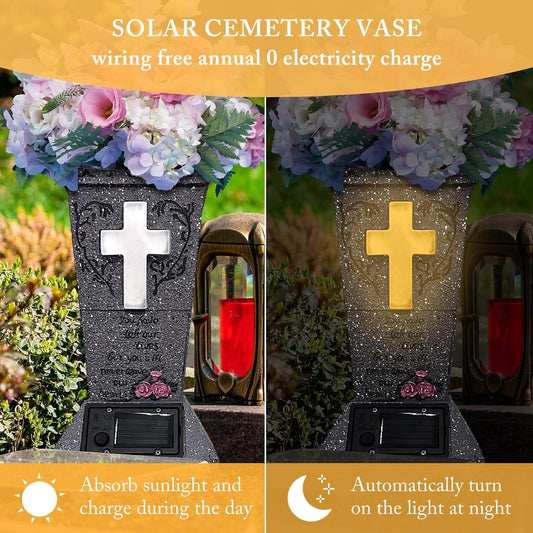 💕Hot sale 49% OFF💖Solar Cemetery Vase with LED Cross – A Beautiful Tribute That Shines with Love 🌙✝️