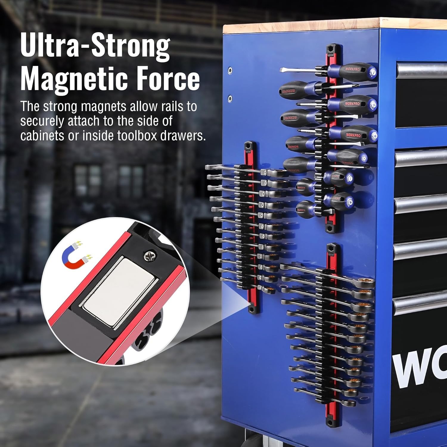 ✔ Powerful magnets prevent tools from falling