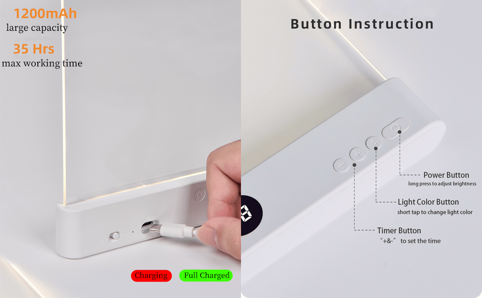 - Book Light Rechargeable: Our book lights for reading at night comes with a built-in 1200 mAh large-capacity rechargeable battery, use the included USB charging cable to charge it, that you can easily move and carry it around, for reading anywhere. After a 3 hours charge, it offers an impressive 5 - 35 hours of lighting time: High brightness for 7.5 hours, medium brightness lasts 16 hours, low brightness extends up to 35 hours