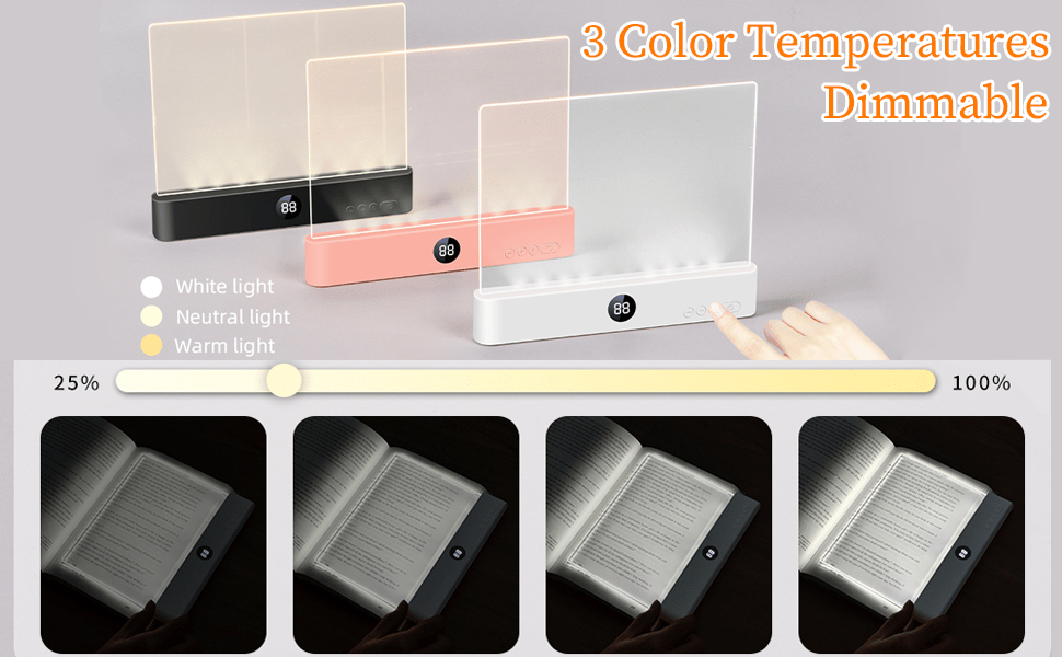- 3 Light Colors Reading Light: White, Warm, and Neutral. The clear panel plate design makes it flicker free, reducing eyestrain for long term use. Warm white sets a cozy, relaxing mood, ideal as a book light for reading in bed. Cold white boosts visibility, great for reading in bed. Natural light helps you focus on work or study